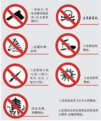 根據(jù)中國(guó)民航局的有關(guān)規(guī)定,乘坐班機(jī)禁止隨身攜帶且不可托運(yùn)的有以下物品: