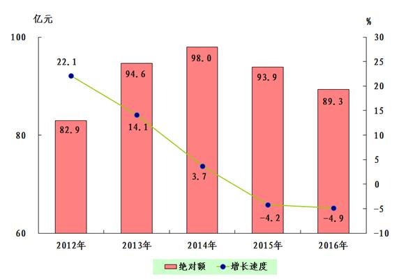 初步核算,全年全市生產(chǎn)總值1049.3億元,按可比價(jià)格計(jì)算,比上年增長(zhǎng)3.9%。其中,第一產(chǎn)業(yè)增加值49.8億元,增長(zhǎng)0.6%,占生產(chǎn)總值的比重為4.7%;第二產(chǎn)業(yè)增加值554.9億元,增長(zhǎng)2.4%,占生產(chǎn)總值的比重為52.9%;第三產(chǎn)業(yè)增加值444.6億元,增長(zhǎng)6.3%,占生產(chǎn)總值的比重為42.4%。第三產(chǎn)業(yè)中,金融保險(xiǎn)業(yè)增加值68.7億元,增長(zhǎng)7.5%;交通運(yùn)輸、倉儲(chǔ)和郵政業(yè)增加值76.1億元,增長(zhǎng)11.4%;批發(fā)和零售業(yè)增加值62.3億元,增長(zhǎng)3.0%;住宿和餐飲業(yè)增加值30.7億元,增長(zhǎng)7.8%;營(yíng)利性服務(wù)業(yè)增加值45.7億元,增長(zhǎng)11.7%。人均地區(qū)生產(chǎn)總值45271元,按2016年平均匯率計(jì)算為6815美元。