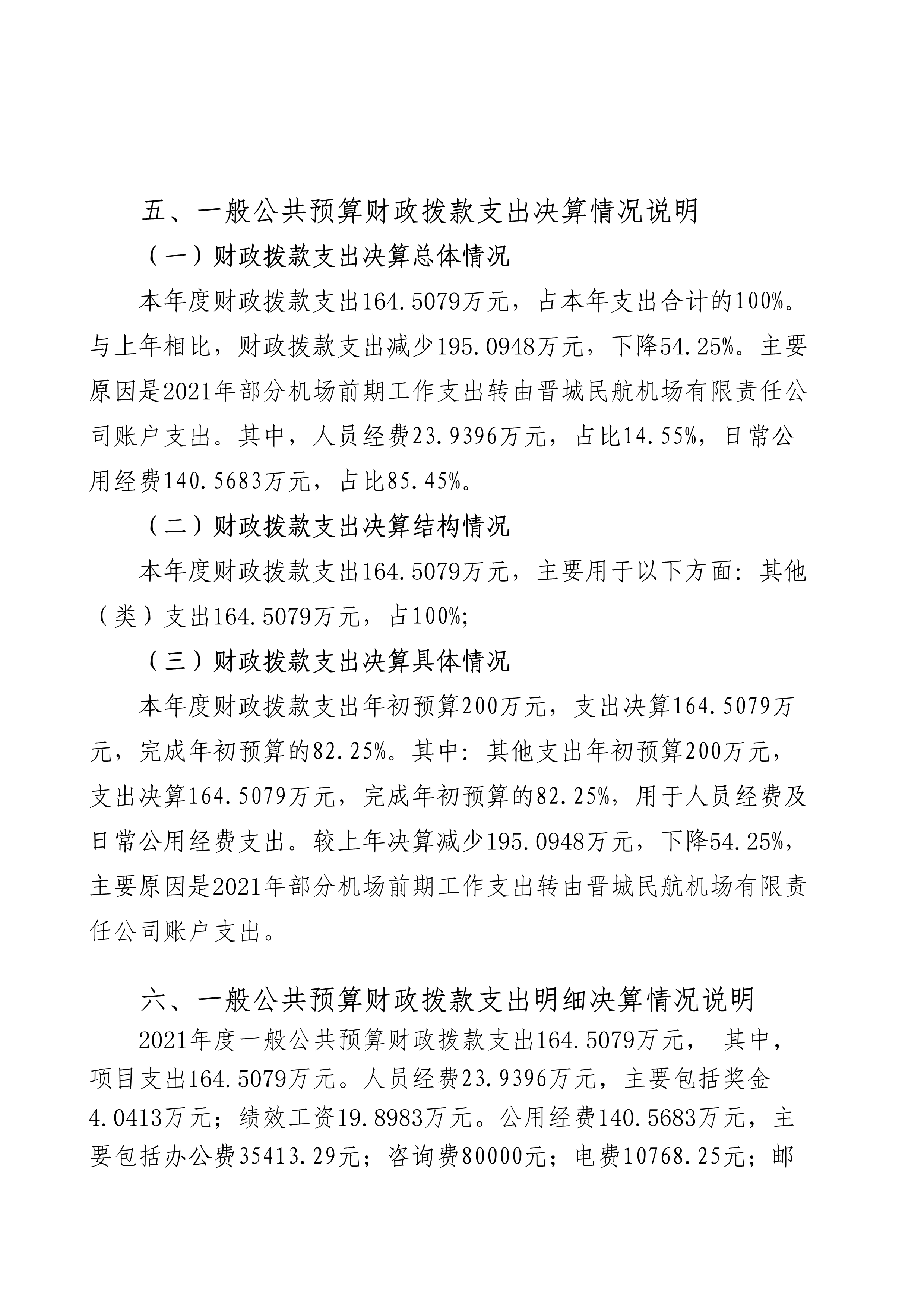 晉城機(jī)場(chǎng)籌建處2021年度決算公開(kāi)