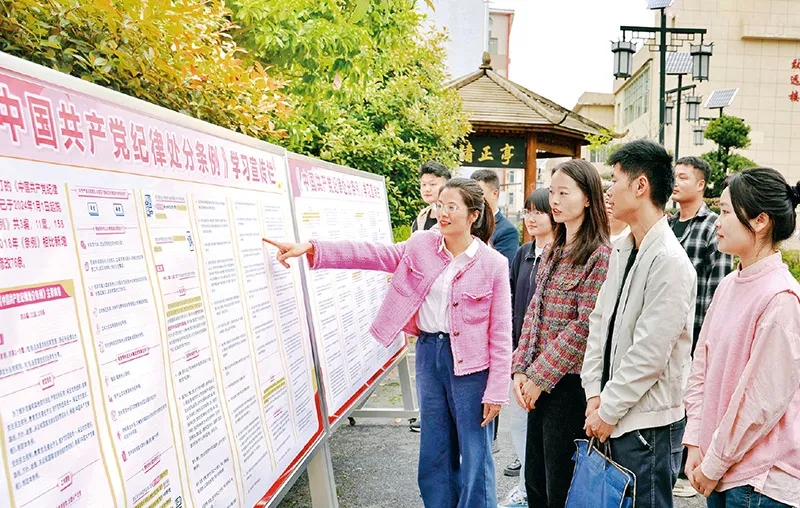 在全黨開(kāi)展黨紀(jì)學(xué)習(xí)教育,是加強(qiáng)黨的紀(jì)律建設(shè)、推動(dòng)全面從嚴(yán)治黨向縱深發(fā)展的重要舉措。連日來(lái),各地區(qū)各部門各單位精心謀劃部署、抓住學(xué)習(xí)重點(diǎn),推動(dòng)黨紀(jì)學(xué)習(xí)教育走深走實(shí)。圖為2024年4月10日,江西省蘆溪縣紀(jì)委監(jiān)委干部在《中國(guó)共產(chǎn)黨紀(jì)律處分條例》學(xué)習(xí)宣傳欄前交流。 鄧建萍/攝